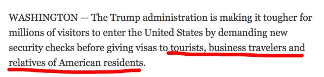 6 T$ Q: E0 @! n6 P为了履行“极端严厉审查”外国人入境的承诺,川普眼瞅着针对穆斯林国家的旅行禁令一直没啥进展,这会又打起了一个另一个更大的主意,而这一举动可能影响包括中国在内的,数以百万计的入境者更加难以进入美国! 8 |/ ?0 ]* U8 x* Z