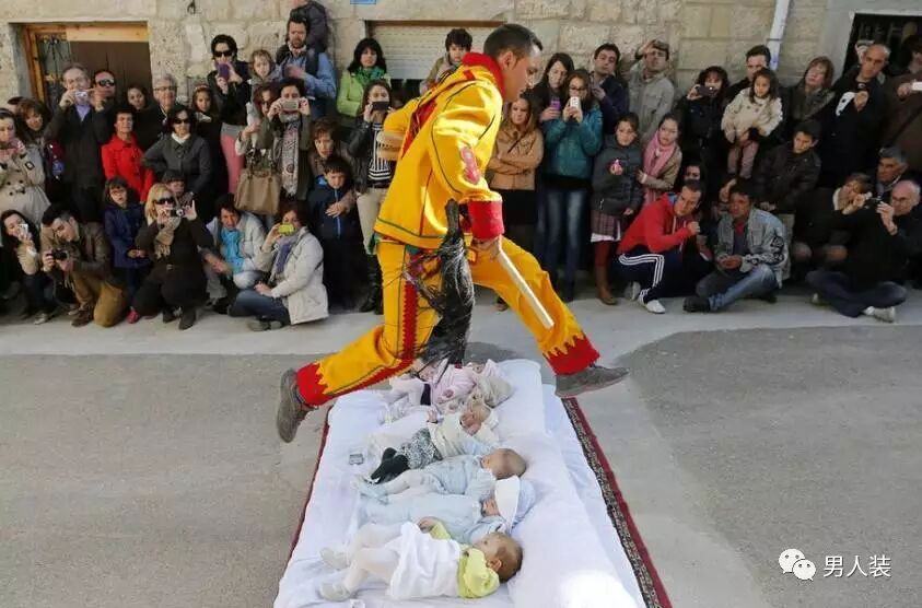 这个节日在西班牙Castillo de Murcia已有400年历史。6名12个月内的新生儿躺在枕头上,一个身穿黄色服装的成年人扮演魔鬼,经过一段助跑后从他们身上跳过去。以这样的方式作为一种洗礼,赦免他们的原罪。