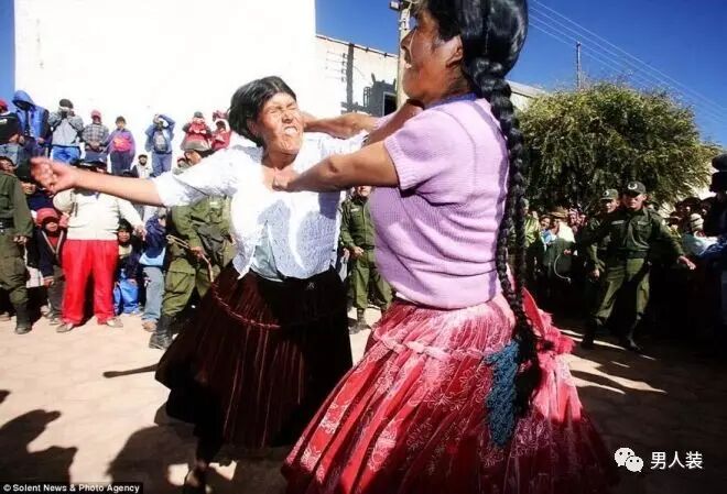 3 {* N( W9 n- o通常情况下,和邻居对打有失礼仪。但在玻利维亚Macha城,邻里互殴却能受到神的庇佑——在格斗节期间“打架斗殴”合情合理的。0 s# r; `1 O2 F, ?: k
