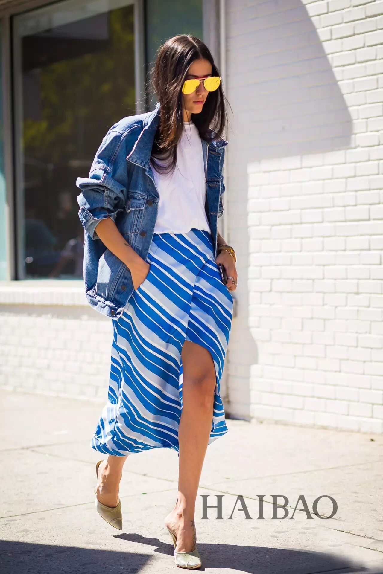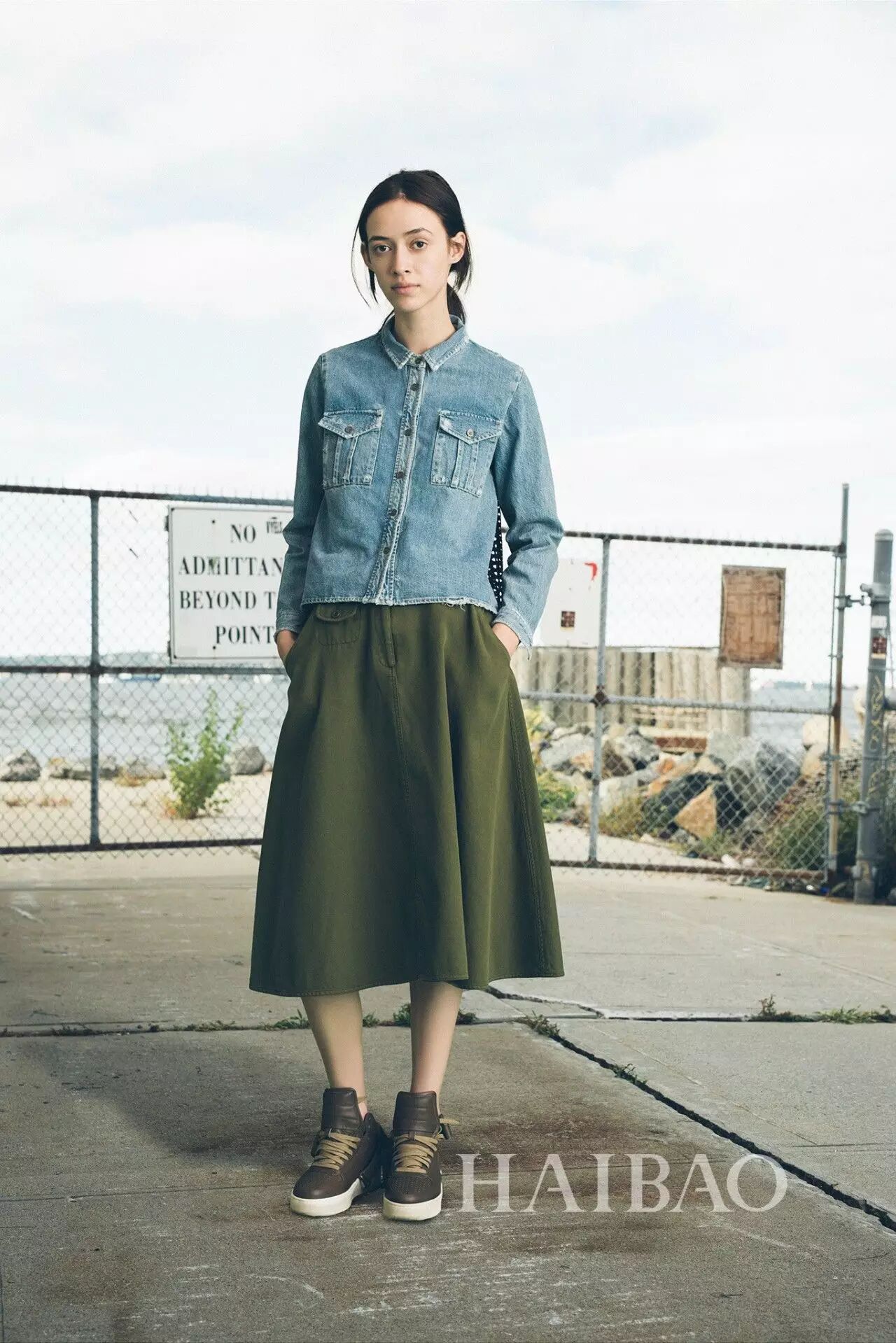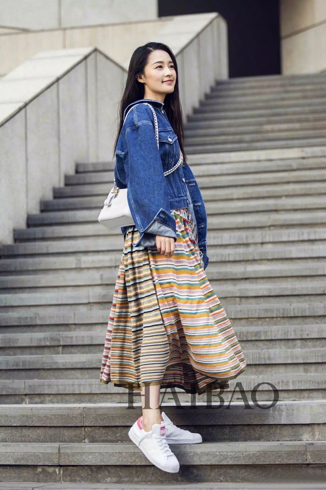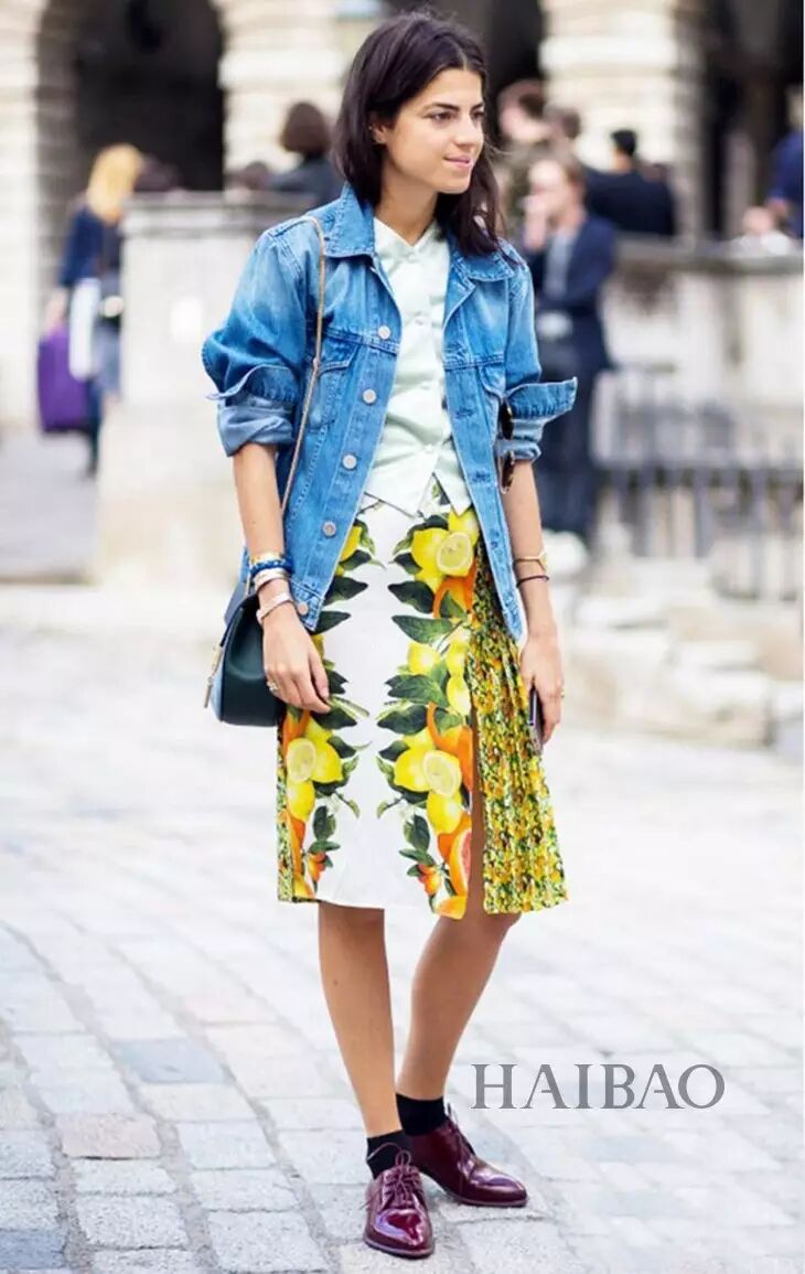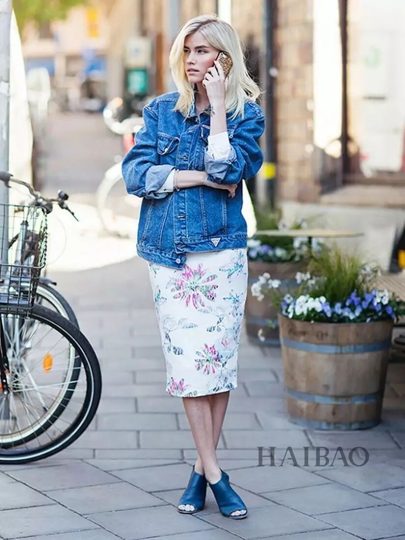 & e5 ~7 g# L( A0 \# W( L当然了,搭配连衣裙特别是长裙,有时候会显得太正式或者像是要出去玩儿,不太适合日常穿搭。可是报友们又不想穿裤子的话,本季在牛仔夹克里搭上一条满意的半裙也是非常美的。街头感、知性风、卡哇伊的裙子都尽管往里搭,不过要是想尝试文艺风格,记得内搭和裙子都素色一些,不要太花就好了。 * }" H0 Y* }3 `' S9 T