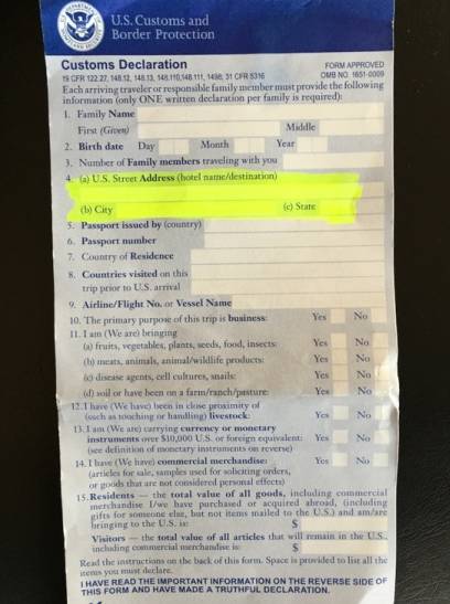 一名持有十年美签的中国男旅客从广东抵达美国,在入境芝加哥奥黑尔国际机场时,所填写的"海关申报表"中,写下非旅馆的美国停留地址。。。但他还没有意识到,麻烦大了!