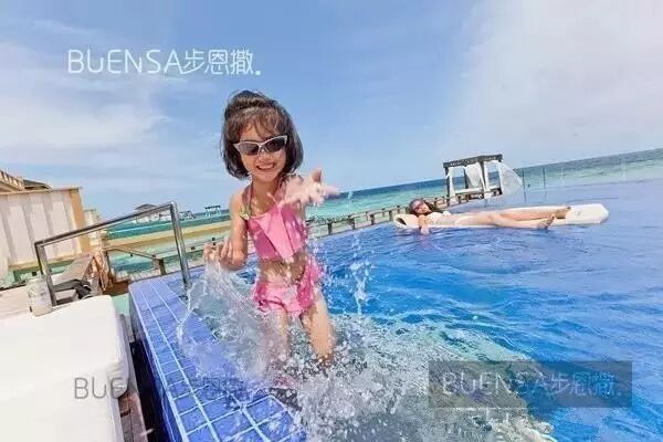 4岁,有了经验的老步, 带着小步跨越了国境, 抵达了碧海蓝天的马尔代夫。