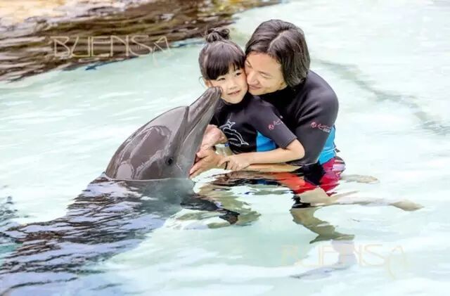 6岁,在新加坡, 从不敢下水, 到大胆接触海豚。