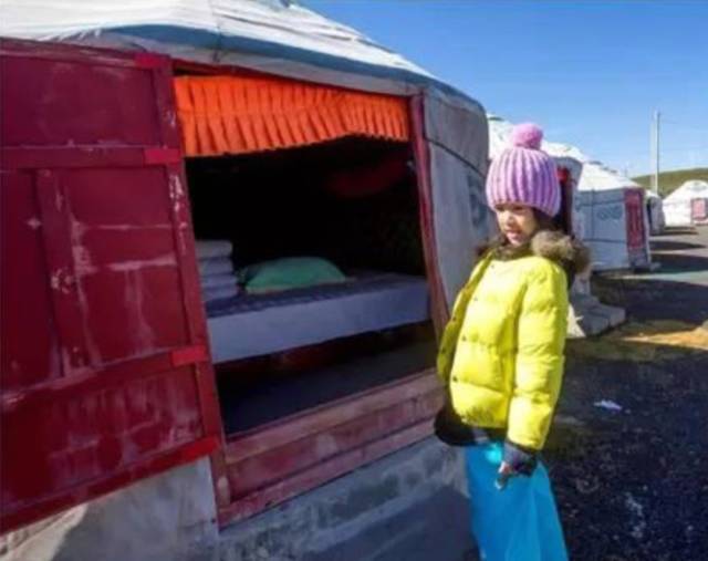 住条件艰苦的蒙古包, 让女儿靠自己的力量, 翻过树枝纵横的小溪。