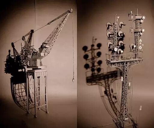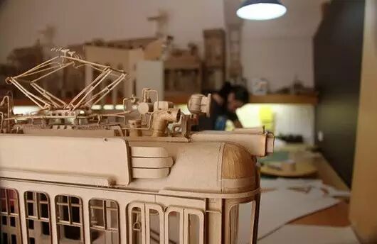 你很难想象, 寻常的纸板和胶水, 在手术刀、裁纸刀、小刀片、 剪刀的共同协作下, 最终变成了美轮美奂的精致模型, 并且更令人称奇的是, 制造这些模型并没有经过提前的计算, 也没有复杂的图纸, 一切都是即兴发挥! 5 @, o- T! A3 q+ x8 C2 f6 A