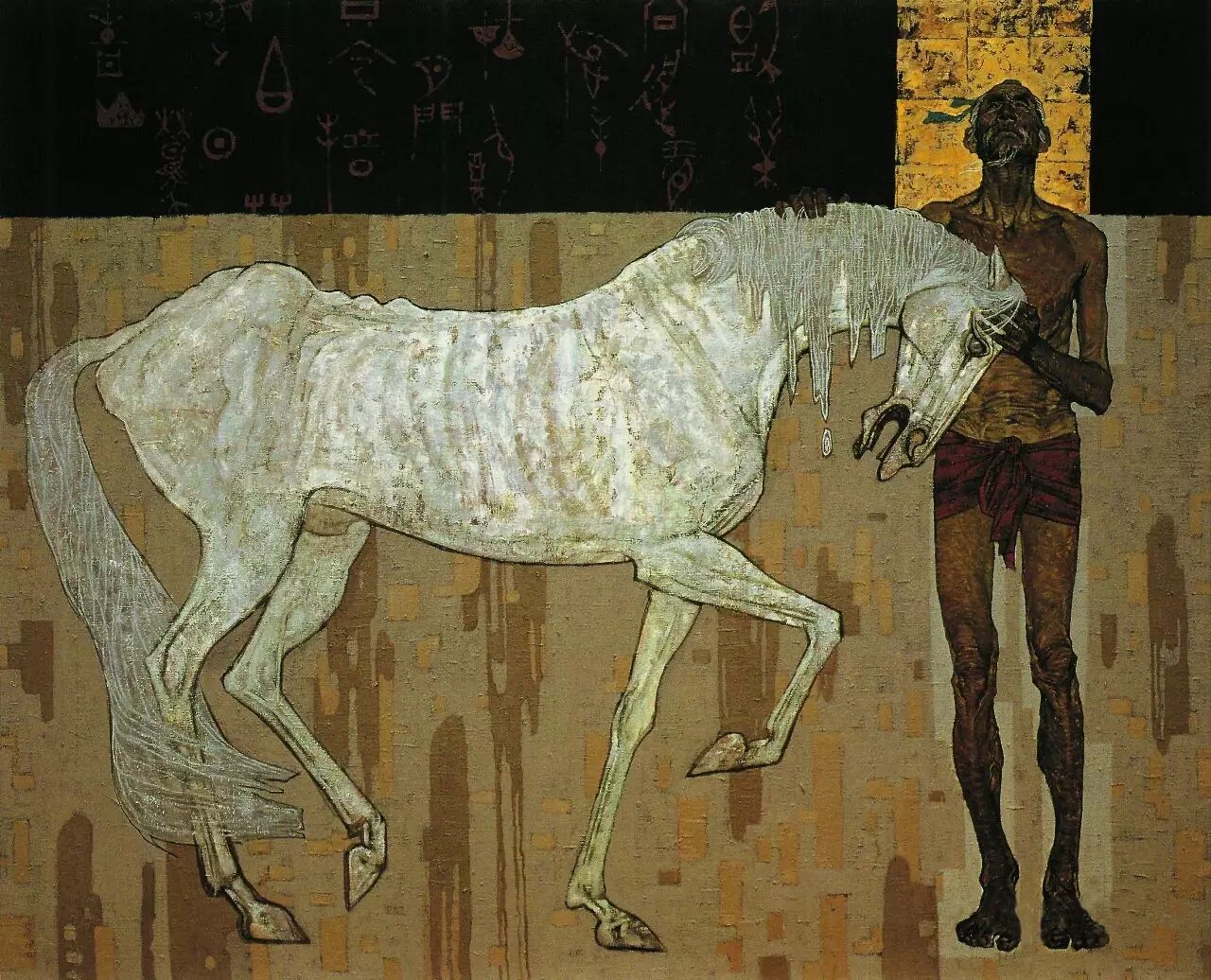 % B0 r) i/ b2 J& k- T6 t从1980年《伯乐像》以中国典故“伯乐相马”演绎出富有中国装饰气息的、悲天悯人的画面,到1986年《故园》以南方古典建筑的幽深廊道聚合出对于中国文化的祭奠与怀思。
