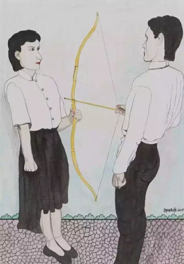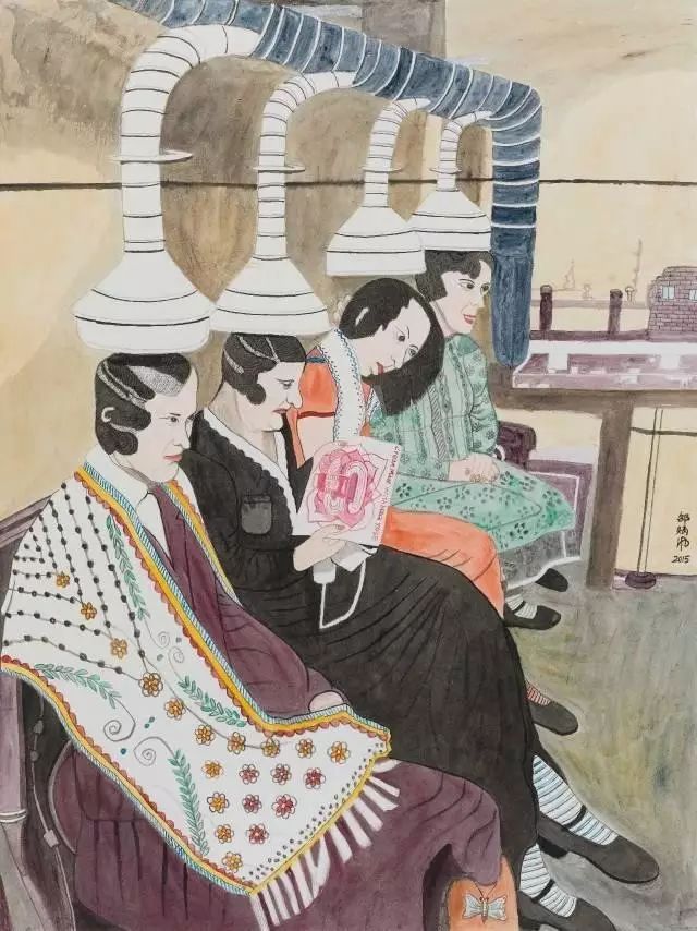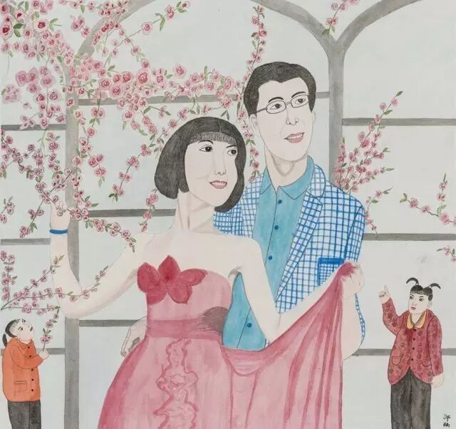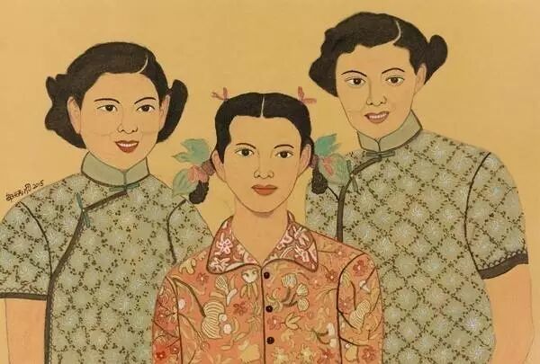 她的每一幅作品, 都流淌出一种, 淡淡的时代气息, 甚至有些像 小学语文书上的插图。