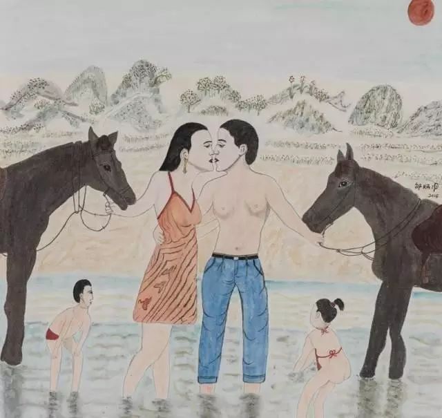 在我们记忆深处, 也许真的存在一方净土。 那里的人们简单真诚, 不带防备地生活着、体验着、相爱着, 我们百转千回想要找到 哪怕一点点曾经存在过的痕迹, 终于在邵炳凤稚拙原生的线条, 和粗粝质朴的色块中找到了答案。
