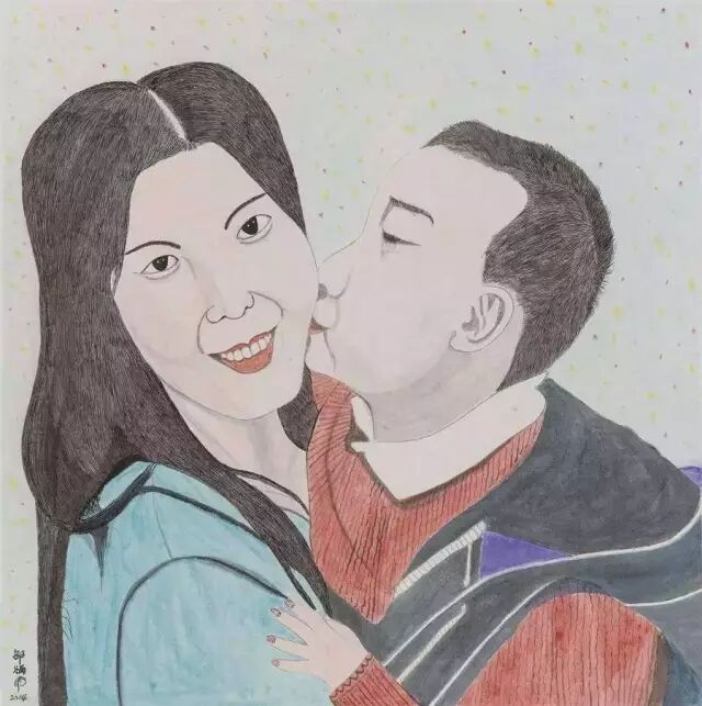 画作看上去十分简单, 却又足够细致。 人们带着微微笑意, 传递着甜蜜的情感。