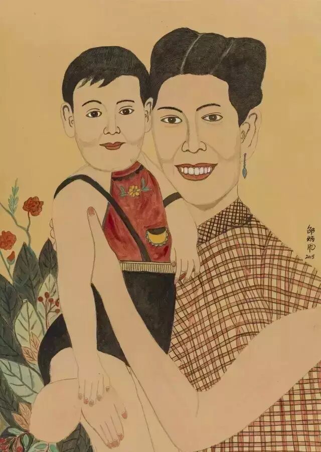因为做过绣花的工作, 她的造型基础和颜色, 都受到了女红的影响。 不同的是, 绣布上的一针一线, 变成了纸上的一笔一画。