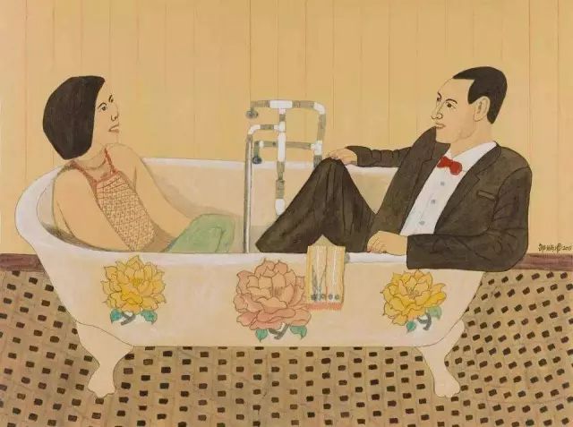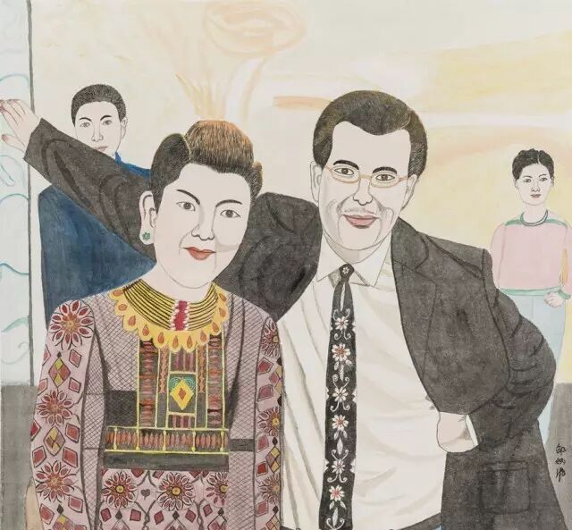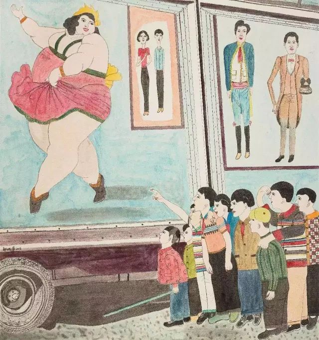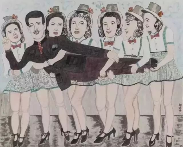 可能是因为没经过 系统的绘画训练, 她的人物造型并不准确, 但这恰恰使她的画更为独特, 整幅作品都洋溢着, 一种亦庄亦谐的古怪的气息。