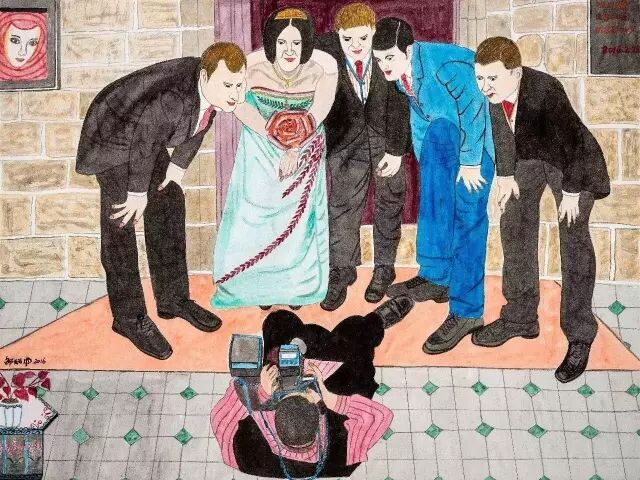 她对人物造型, 保持真实的基础上, 做了略微夸张的变形。 细节局部的夸张放大、渲染, 反而增加了原片不具有的幽默与诙谐, 让她笔下的人物, 变得很不一样, 很有当代艺术的感觉。