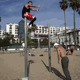 8 G- J! X; g; X' L0 h 能在任何地方用任何角度撑起自己的身体,地心引力是在他身上失效了吗?