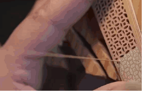 孙亚青会亲自检查每一把扇子。 把扇子钳在手上, 好的扇骨, 会稳稳立住不掉。 + u7 Y* X V3 @9 C1 I( a
