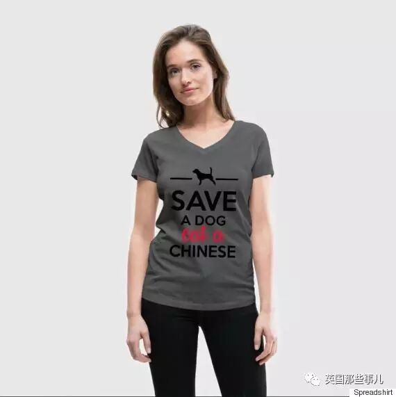 在美国加利福尼亚州,一名Airbnb的房主就在这位亚洲女生到店的前三分钟取消了她的订单。 而所有的解释只有一个字,Asian. 只因为你是亚洲人。 值得一提的是,这位女士三岁就来到美国,在美国生活超过23年,早已经把美国当成了自己的家, 却因为自己的亚洲面孔遭到公然歧视,在雪夜无可适从。 让我们把时间再往前推一点。 德国的一家零售商公然挑衅亚洲人,甚至将矛头直指中国人, 出了一系列标记着“吃一个中国人,救一条狗”的产品。 还有类似的“吃一个中国人,拯救一条鲨鱼” 的产品。 虽然这家公司顶不住压力,最终将这一系列产品下架, 但是依然掩盖不了他们公然羞辱中国人的事实。