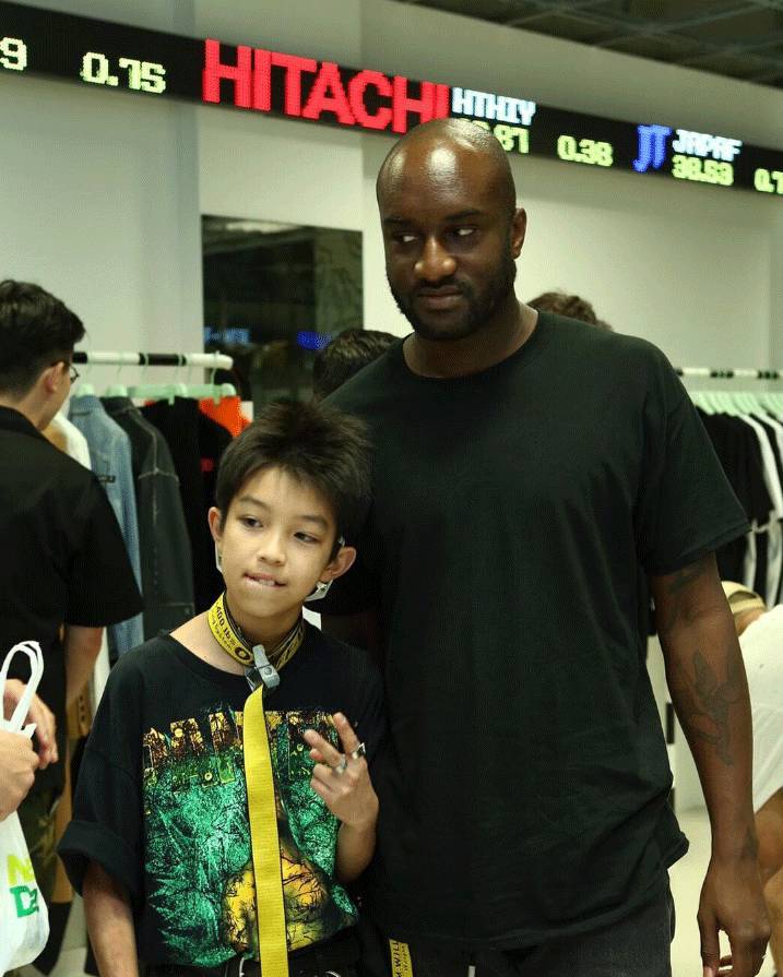 $ A6 g3 o% D2 m8 H% q; s而这根腰带就来自潮牌OFF-WHITE,这个牌子的东京门店开幕时,品牌主理人Virgil Abloh还主动和Yoshi小朋友合影。' G/ x. m: @* j) e3 `$ b5 y