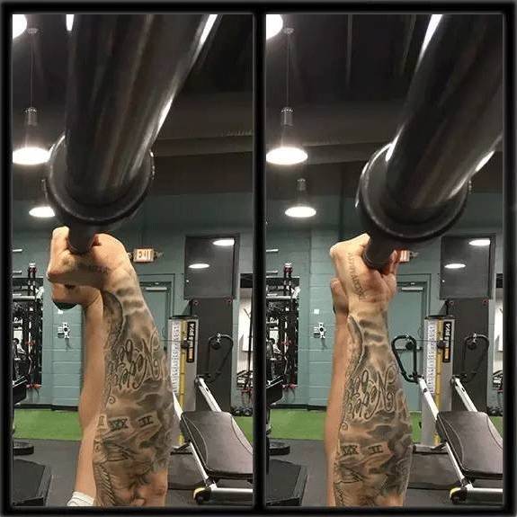 - 握杠铃时,杠铃的重心和手腕在一条直线上,而不是在手掌上。 e1 v, K2 Q5 n