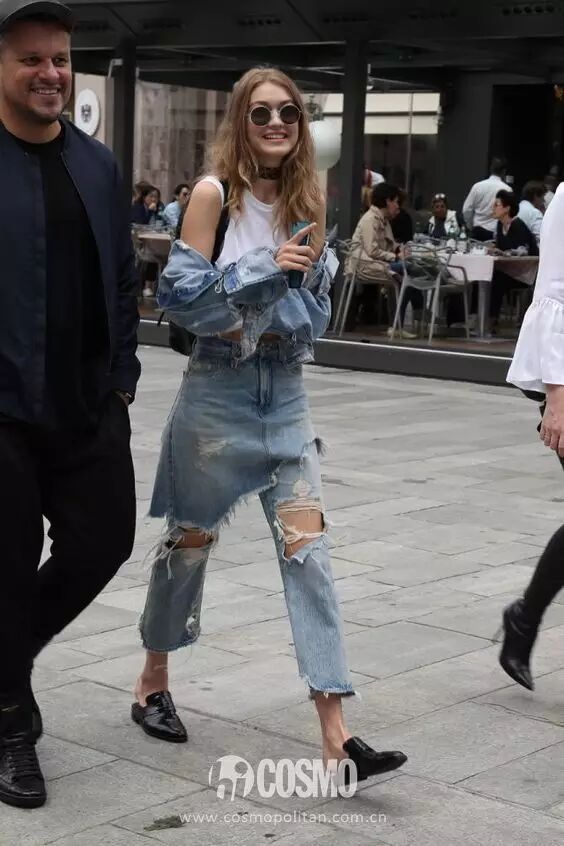 So,不管是衬衫,T恤,还是oversized毛衣,你试试在侧面或者正面打个结,效果太好,求表扬~春天的脚步越来越近,好咧,大大方方潇洒走一回的时机刚好!先看看GIGI是怎样搭的:
