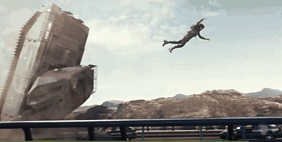 0 [1 t3 J% I3 L9 P3 S% [0 y车子在爆炸的油罐车翻滚的空隙开过去,对速度的精准把握让观众跪了一片。 * L( j# F1 u' X# G