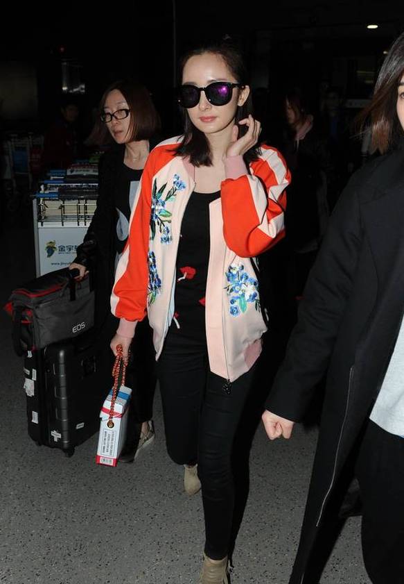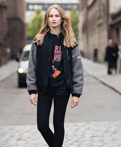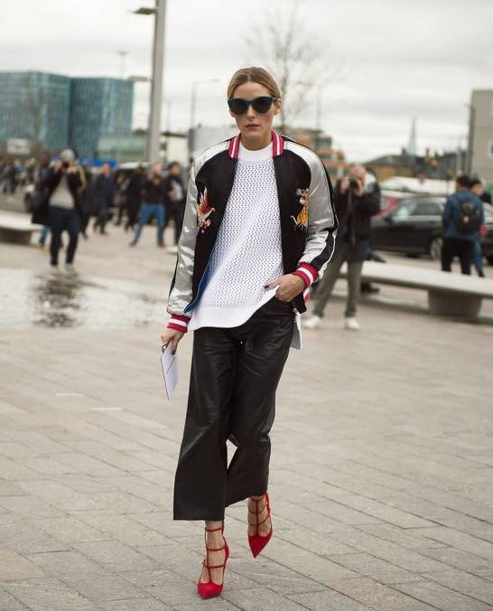 ! s% L$ e' \! i: m, R一条运动裤 配上时下流行的飞行员夹克 一抹殷红让你立刻成为人群的焦点