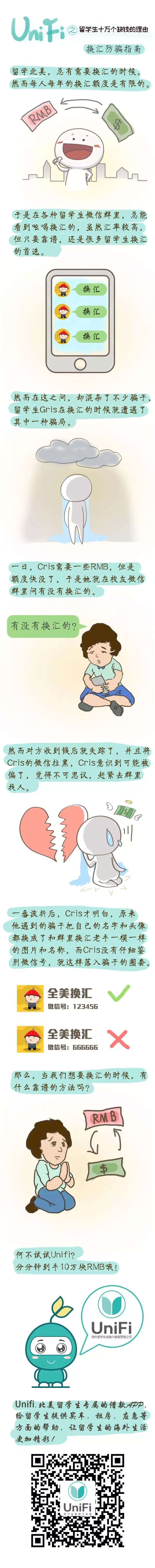 有位同学换汇的时候 一时大意,分分钟被骗了10万元...... ↓↓↓ 由于身份的限制,在北美的留学生很难申请到信用卡。然而在发生一些突发状况,而资金缺乏的情况下该如何是好呢?那就来下载UniFi,申请借款去解决自己的燃眉之急。