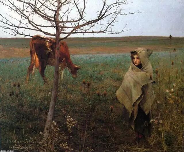 巴斯蒂昂·勒帕热(1848-1884)法国乡村风俗画家和肖像画家,其作品在法国和英国受到广泛摹仿。出生于法国牟兹省一个富裕农民的家庭。他是学院派画家卡巴涅尔(Alexandre Cabanel)的学生,但他并不受学院派的局限。他从学院派获得严密的素描技巧,同时又对库尔贝、米勒等现实主义画家深深钦佩,对莫奈等印象派画家的光色的表现也极赞赏,并且将他们的色彩技巧吸收进自己的绘画之中。% t6 B% ^% k3 J* k, _1 I