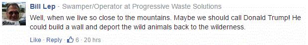 社交媒体上,大家的表现也是一片祥和,一点都没有惊慌的意思。这位大叔说,我们住的的确离山太近了,也许我们该请川普总统帮我们建个墙,让野生动物们回到他们自己的地界去吧。