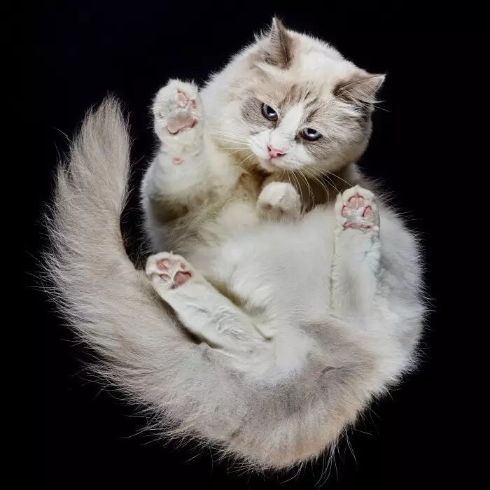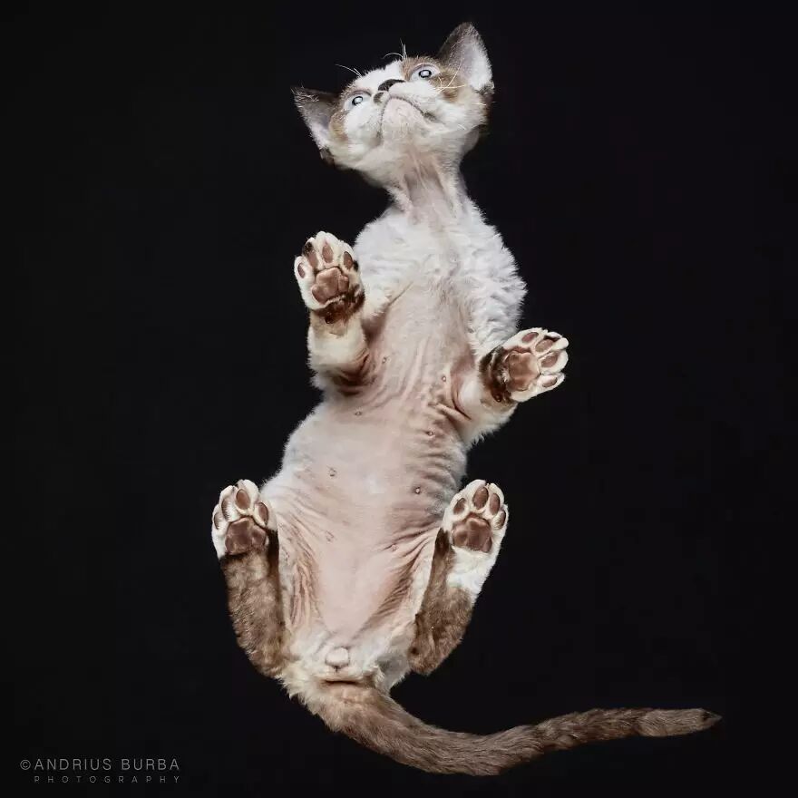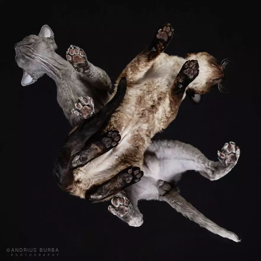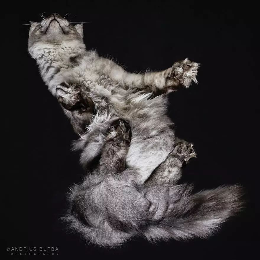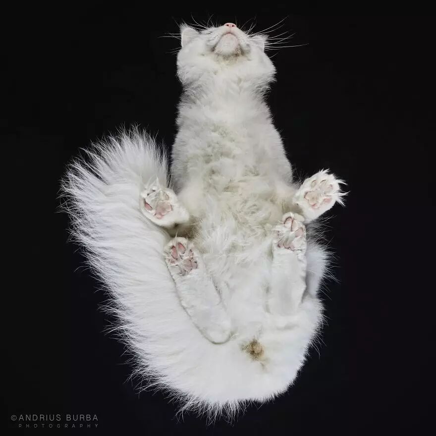 Burba通过拍摄这些照片, 再一次深深感受到猫和狗的区别: 猫认为它们是神, 因为人们养活, 讨好和给它们家。