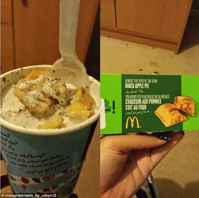 + L4 n9 D! {0 v6 w, P# v如果说以上还算是较为合理的人性化搭配,那么下一款就是突破想象了。苹果派口味的麦旋风你喝过吗?一口古老神秘恒河水都感觉比这个靠谱啊。。。