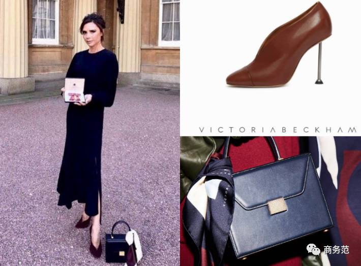 维多利亚当天穿了自家品牌连衣裙,高跟鞋和VB Vanity Box包包。 Pin Pump高跟鞋官网售价约5148元人民币。