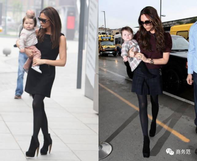 0 X% h0 p4 |$ x2 F5 W从搭配上看,并没有太大问题。贝嫂还专门穿修身的包臀裙或者小短裙。鞋子和丝袜搭配,显得小腿更加修长。