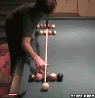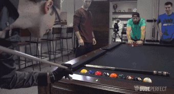 但是这世界上总有大神,不管多沉稳的运动,到了他们手里,照样玩得让人瞠目结舌。 这帮人,就是专门玩花式特技台球的,英文叫Trickshot
