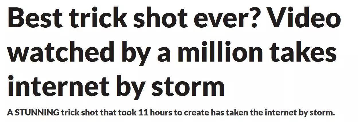 但是要说Trickshot的极致,还得倒今年1月份,一个被称为史上最牛Trickshot的视频,被一帮布里斯托的英国人给搞了出来。