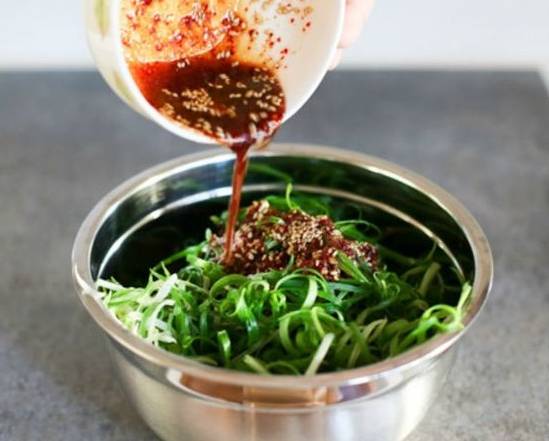 3 M8 M* a. d f( I* B第四步:调味。将黄瓜捞出,拌入料均匀即可,凉拌黄瓜一定要有蒜才能轻松提味! % _$ L9 S% M- M3 {8 K) t