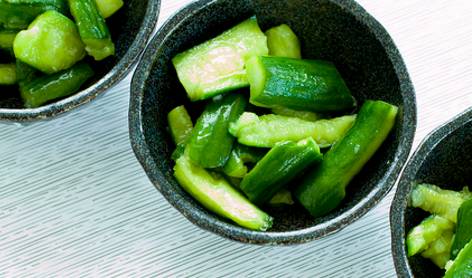 & V5 s) h& I$ r除了酸辣瓜条 最受欢迎的凉菜就是刀拍黄瓜了! 一分钟就上桌 * t' O: z! @) ]+ I