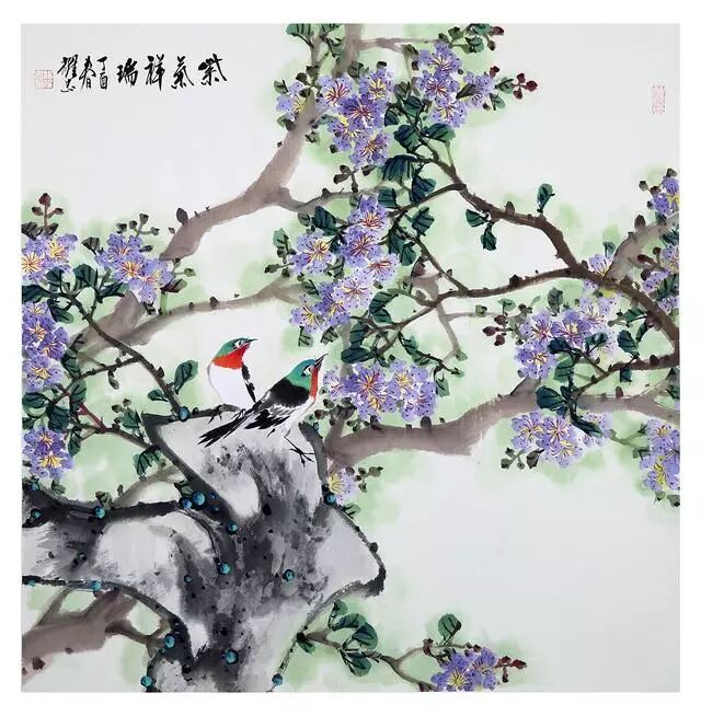 * Y& W: R8 @& \% r, l% j杨耀忠 /《紫藤小鸟》/ 68x68cm