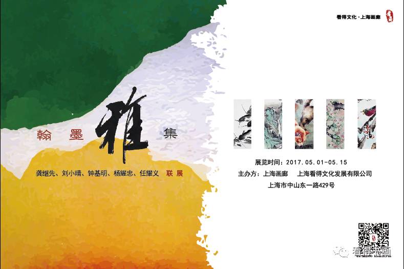 翰墨雅集———龚继先、刘小晴、钟基明、杨耀忠、任耀义书画联展 展览时间:2017.05.01.—05.15. (每日10:00-18:00) 展览地址|上海画廊:上海市黄浦区中山东一路429号 (黄浦公园内 ,近北京东路)