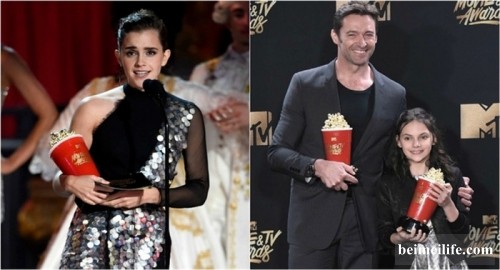 休杰克曼与小童星 Dafne Keen在《罗根》里的父女情获得最佳搭档奖;《月光下的蓝色男孩》里一场在沙滩的同性亲吻戏,被评选为最佳亲吻奖,Ashton Sanders 与 Jharrel Jerome一同上台领奖。