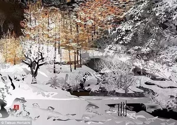 如果只看画作, 你只能感受到画面的美, 但翻看堀内辰男的作画步骤, 那一条条繁密的线,细致的点, 任谁看了都会惊掉下巴。' i. }! U p/ ?4 k+ [" g