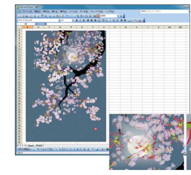 + h V* A* d0 c7 Q; }# d/ X花了整整半年, 了解透Excel各项神奇的功能后, 堀内辰男开始了作画的尝试, 最初从一片树叶,一瓣花瓣开始。 / e* |- w- R+ r' T6 J4 Q