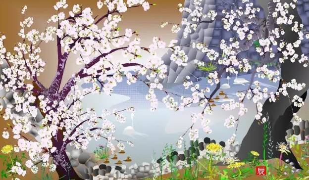 7 c2 e; X& |/ `$ H时隔一年, 也就是作画的第三年, 他才画出了像样一点的一株樱花。