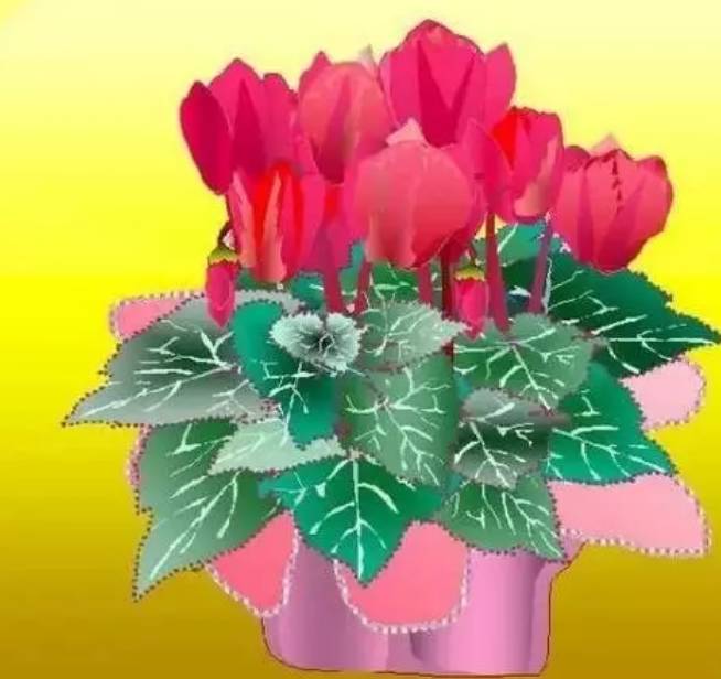 画出了一株仙客来, “质感”相当粗糙。 9 D$ m; j+ U& S! F