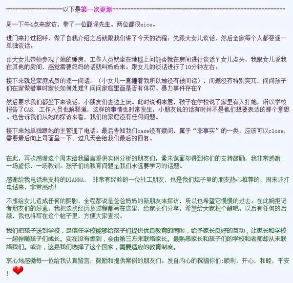 家访过后,这位孩子的妈妈也及时更新了帖子向大家说明了情况:9 R/ h6 T% _5 P5 ^