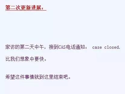 接下来她单独跟她的主管通了电话。最后告知我们case没有疑问,属于“非事实”的一类,应该可以close,需要最后向上司面呈一下。过几天会给我们最后的回复。”