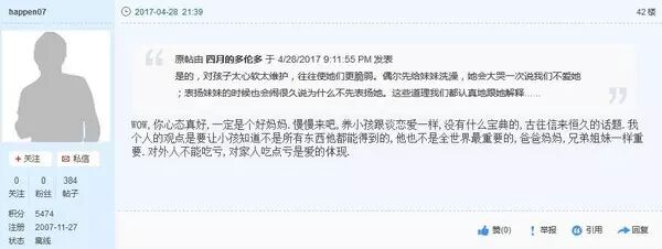 ; H L$ y8 v" }4 ~ E/ D6 o ~随后,这位不知所措的母亲就在论坛发帖进行求助,希望有过类似经历或相关信息的小伙伴能帮忙说明一下。众多热心小伙伴进行了回复:* d( q+ x: M' o7 K9 G