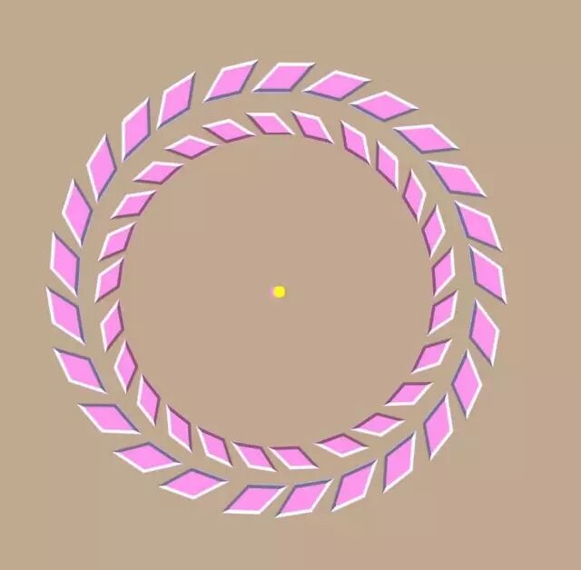 ) w) ^+ k: z8 g7 x/ V ` 这幅动图中心有个小绿点,大家仔细盯着绿点看上一会,然后你会发现那三个小黄点发生了神奇的变化……