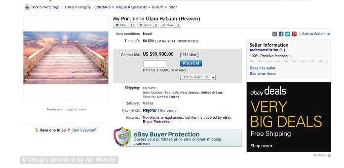 天堂的席位,卖给你,只要不到10万刀哦。。。 不过这些奇葩的拍品,基本上是开玩笑挂挂而已。