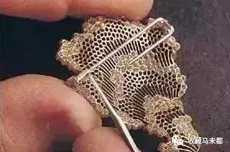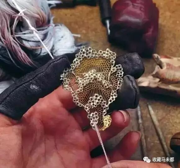 工匠用极细的覆盖着滑石的棉线, 对每个蜂巢孔进行内部抛光。 这是一项极耗时耗力的工序。