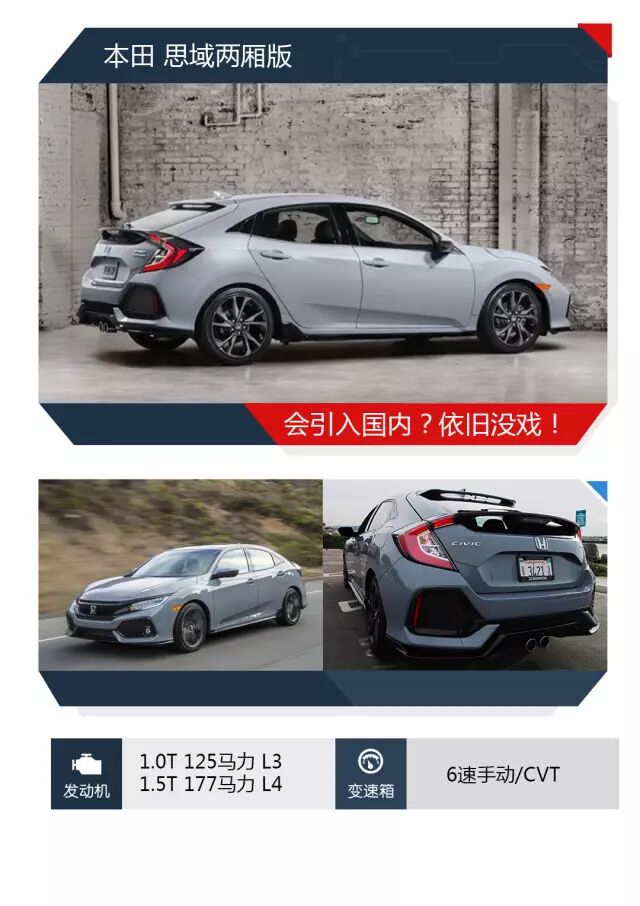 当国产第十代思域上市后,它焕然一新的外表,丰富的配置以及难以置信的测试成绩,让无数人都对它青睐有加。不过在一些车迷心中,似乎总觉得它好像差点什么,因为他们认为,三厢思域的造型还是向家用做出了妥协,而两厢版本才是最纯粹的思域。在2016日内瓦车展上,本田旗下的新一代思域两厢版首发亮相。