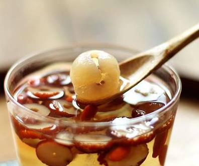 做法:取2、3片生姜配上几颗桂圆,放入锅中熬煮即可。 f- j: Q% ~9 s: P+ w' s2 S4 A